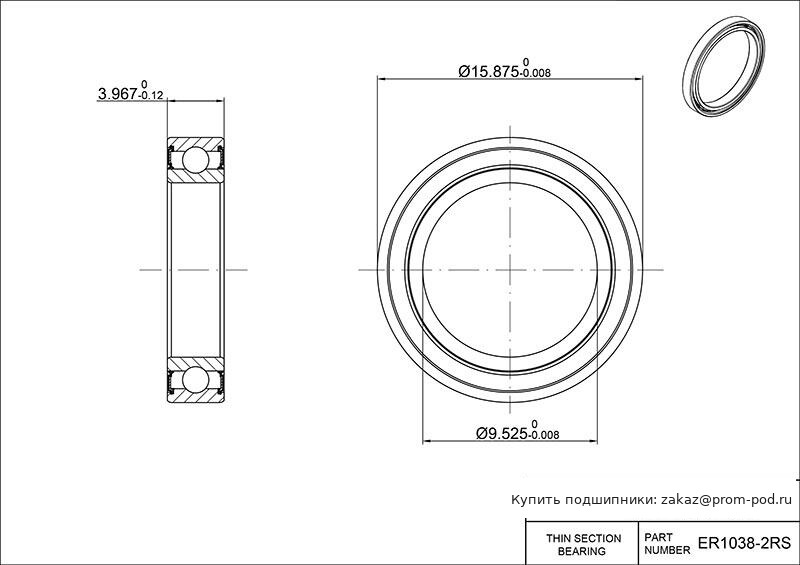 | ER1038 ZZ | Шариковый подшипник | Стопорное устройство для установочного винта. Два уплотнителя из синтетического каучука. |