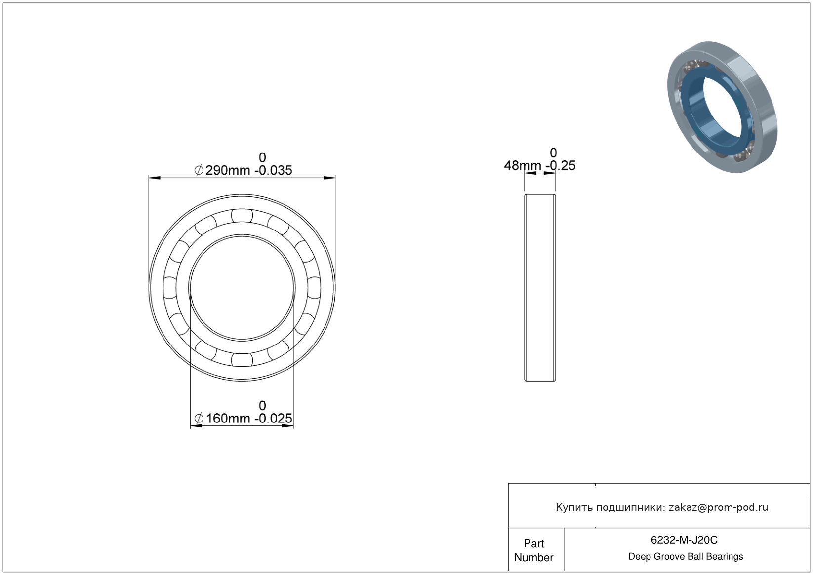 | 6232 | Шариковый подшипник | |