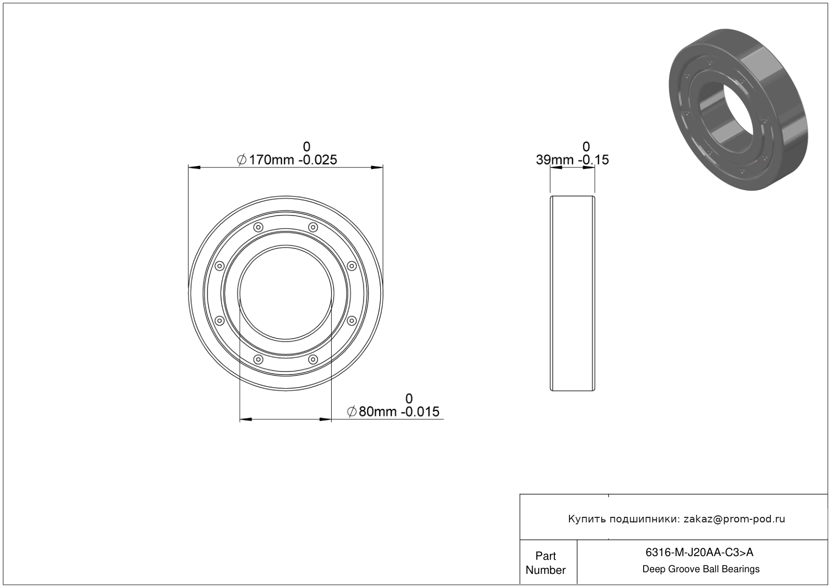 Цена на подшипник 6316-M-J20AA-C3>A является расчетной и зависит от следующих факторов: