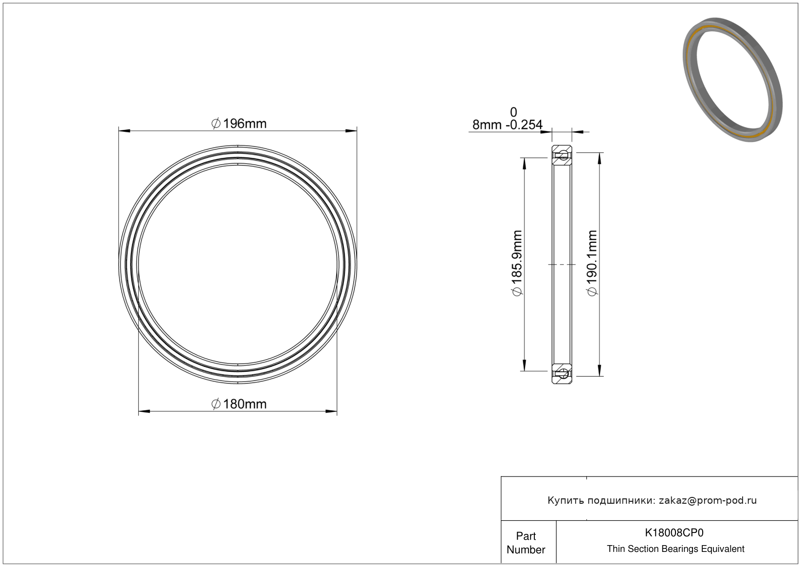Цена на подшипник K18008CP0 является расчетной и зависит от следующих факторов: