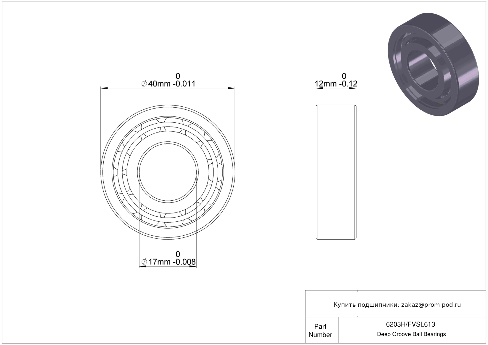 Цена на подшипник 6203H/FVSL613 является расчетной и зависит от следующих факторов: