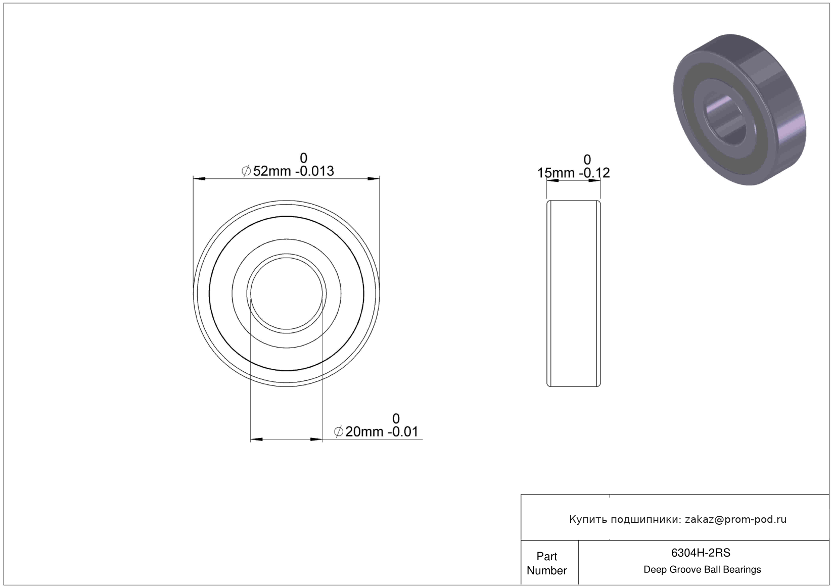 | 304PP | Шариковый подшипник | Уплотнение с двух сторон. |