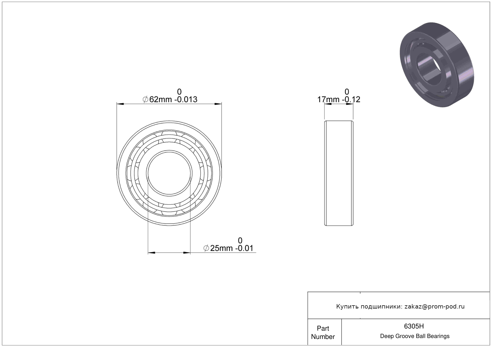 Цена на подшипник 6305H является расчетной и зависит от следующих факторов: