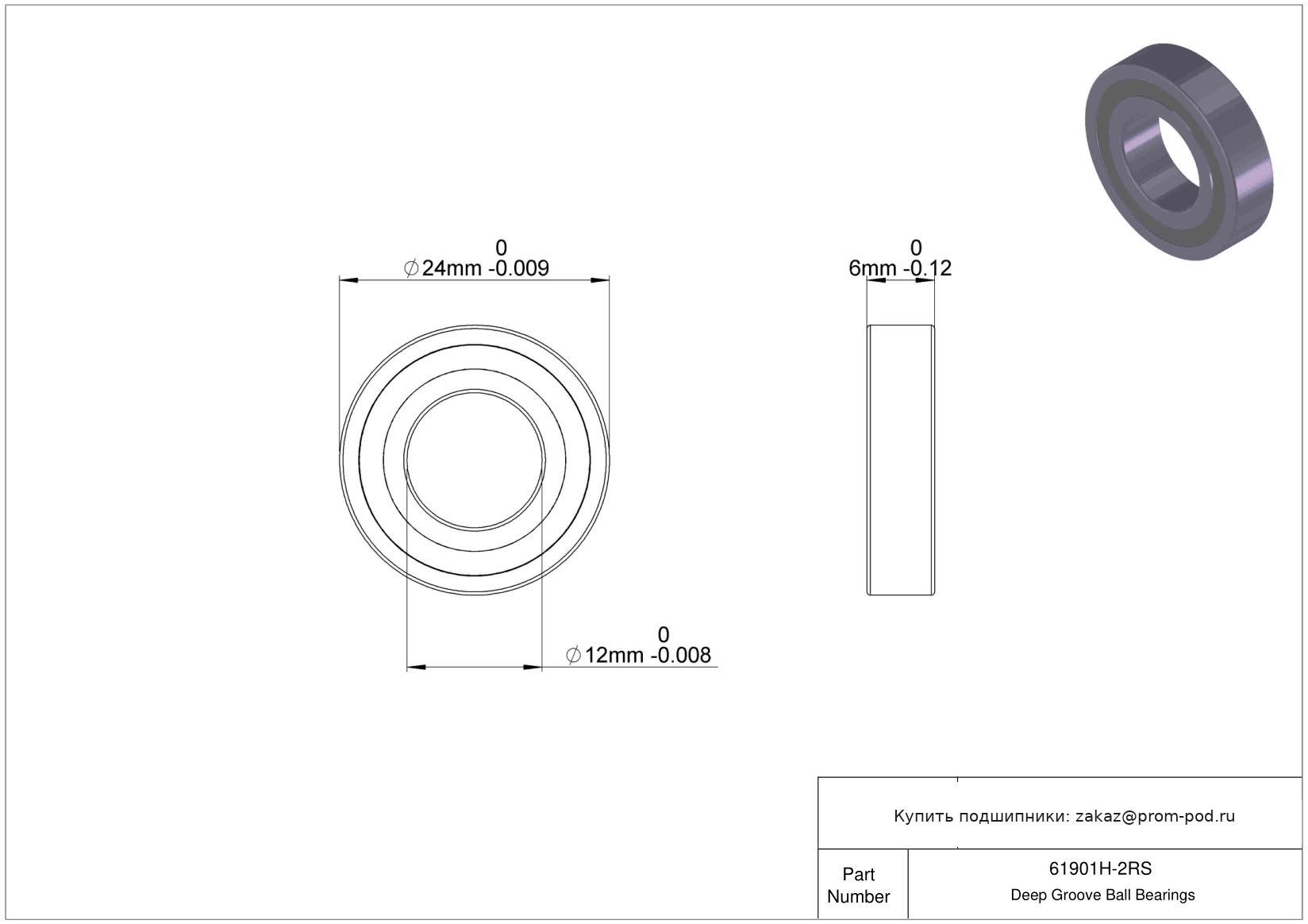 | 6901 2RS | Шариковый подшипник | Уплотнение с обеих сторон, NBR. |