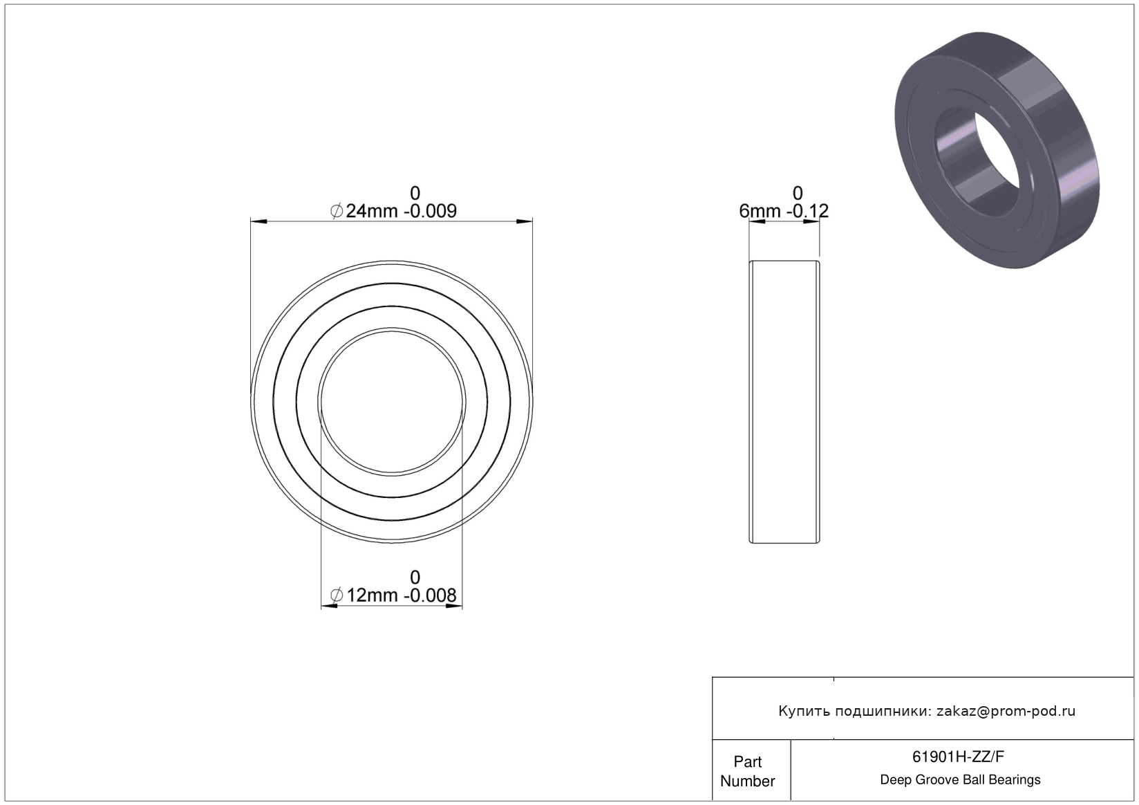 | 6901 2RS | Шариковый подшипник | Уплотнение с обеих сторон, NBR. |