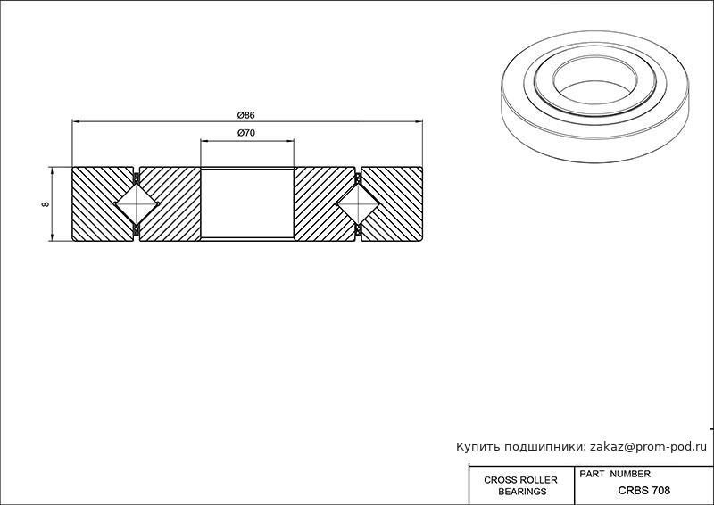 | RA7008C | Подшипник с перекрёстными роликами | Подшипники шатунов самолетов. Специальный зазор. Двух- или трехзначное число после буквы С обозначает средний осевой зазор в мкм. |