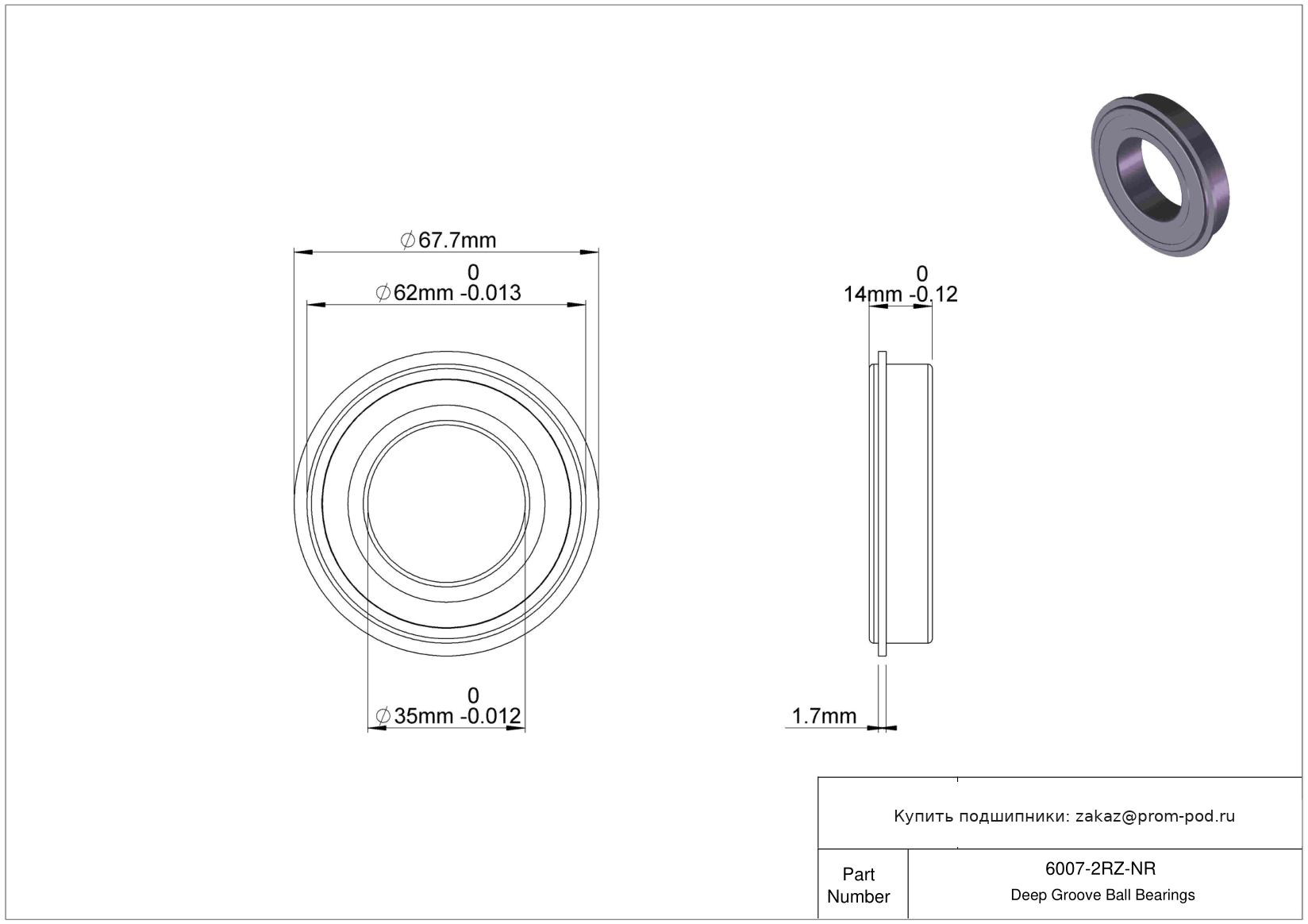 Цена на подшипник 6007-2RZ-NR является расчетной и зависит от следующих факторов: