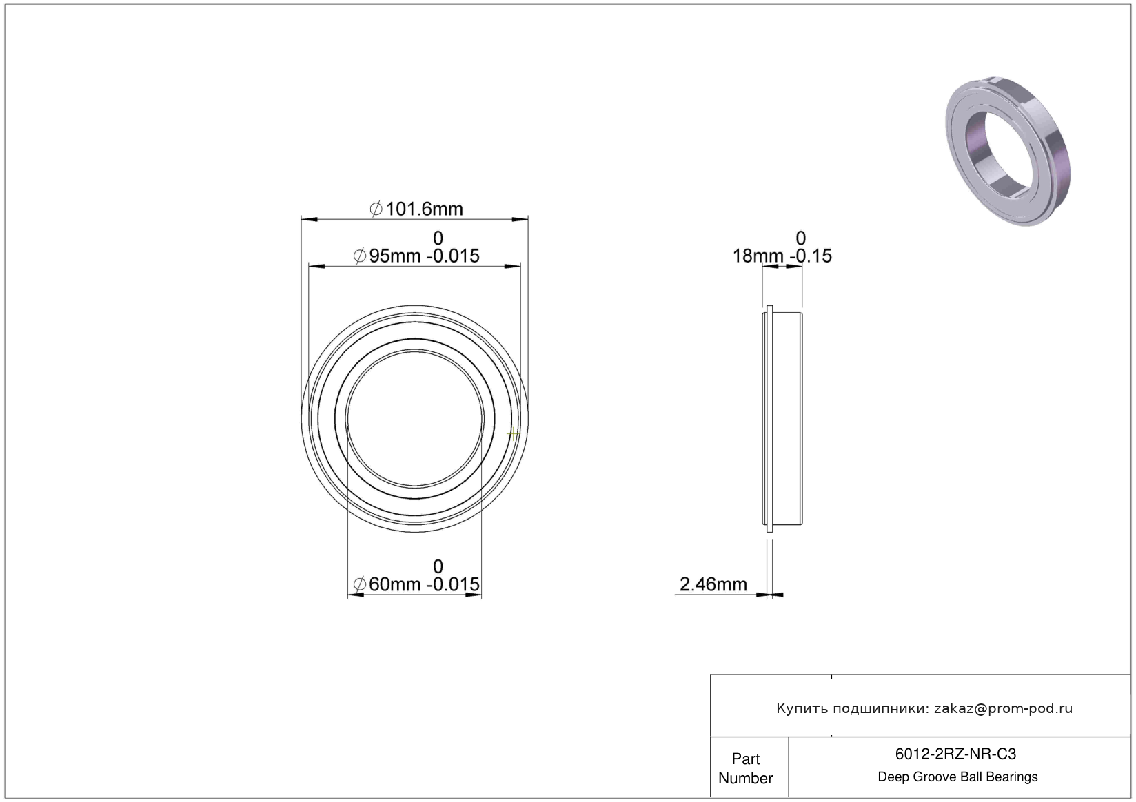 | 6012-Z-C3 | Шариковый подшипник | Внутренний зазор больше нормального. Подшипник с защитной шайбой с одной стороны. |