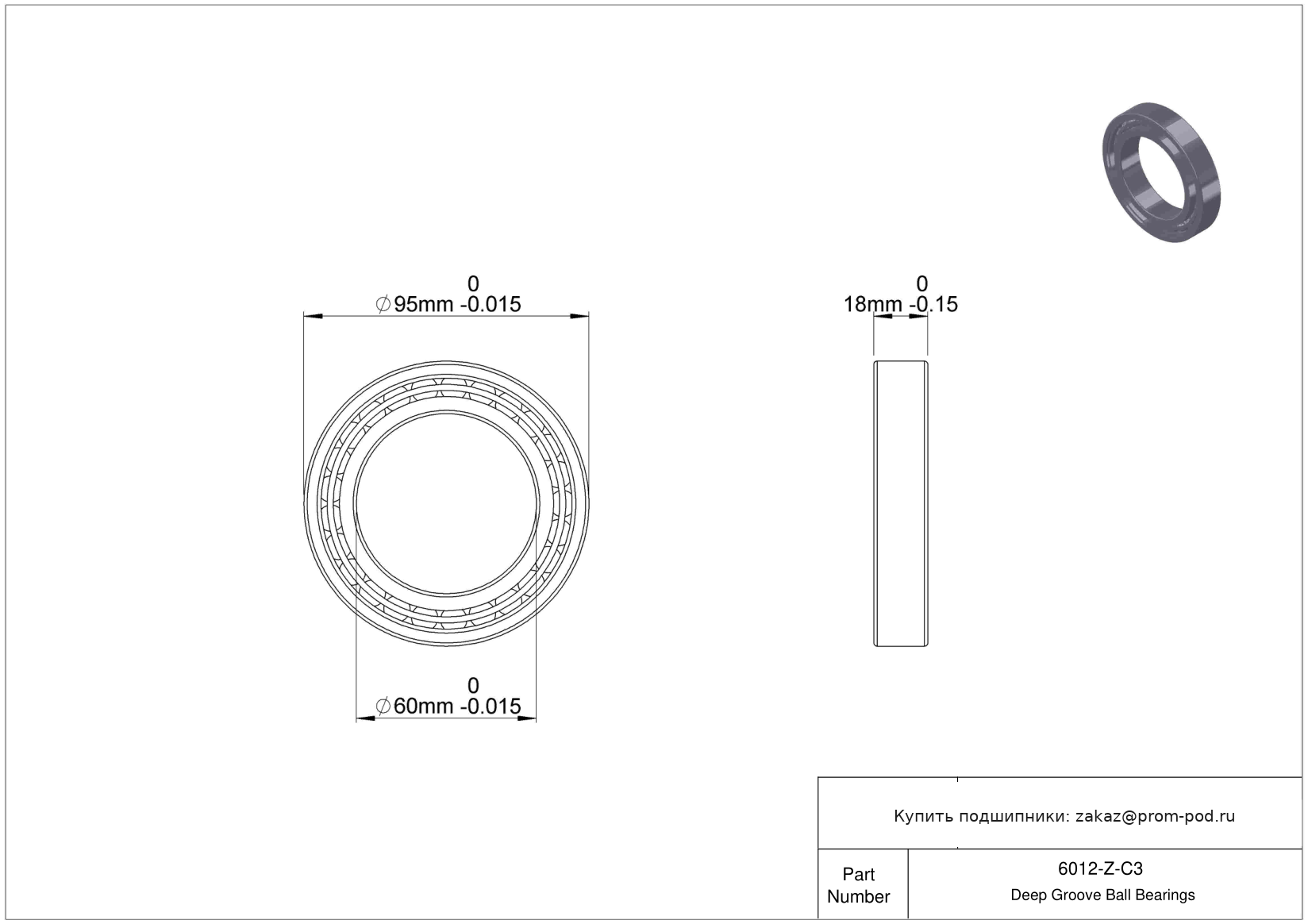 | 6012-2Z-C3 | Шариковый подшипник | Внутренний зазор больше нормального. Защитная шайба с обеих сторон. |