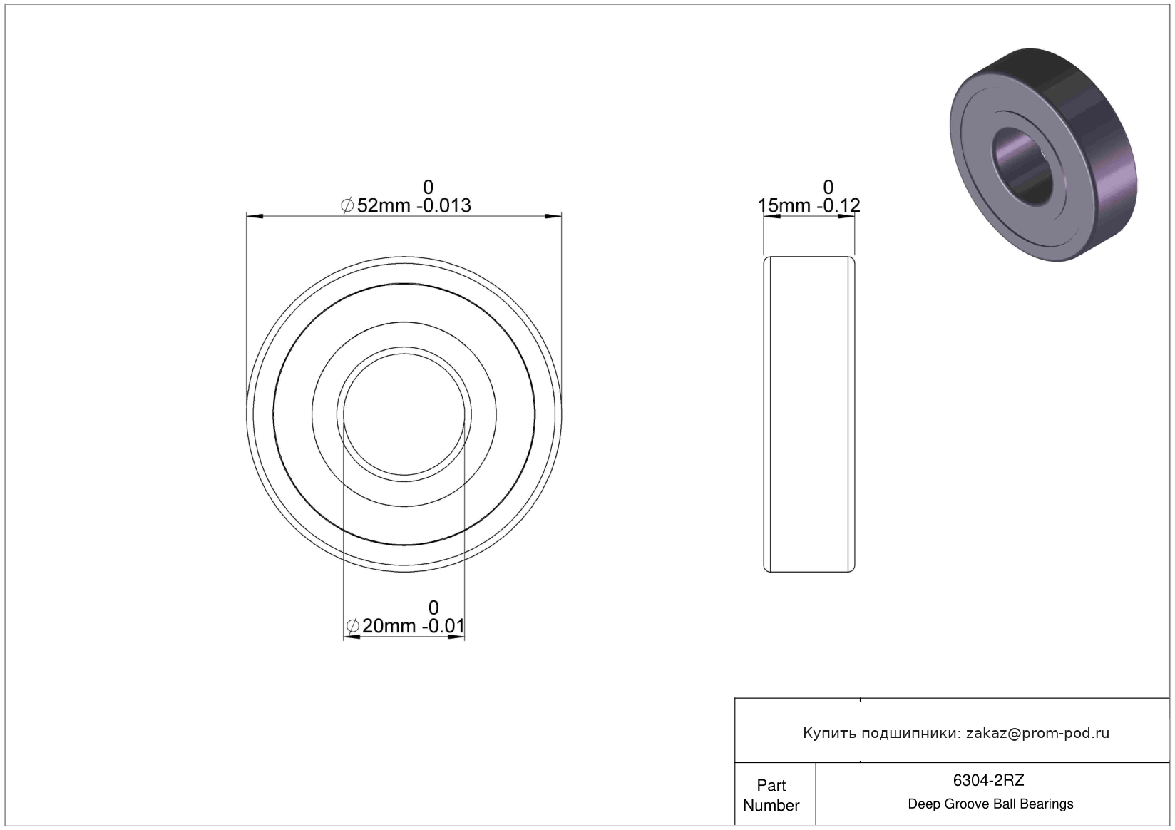 | 304PP | Шариковый подшипник | Уплотнение с двух сторон. |
