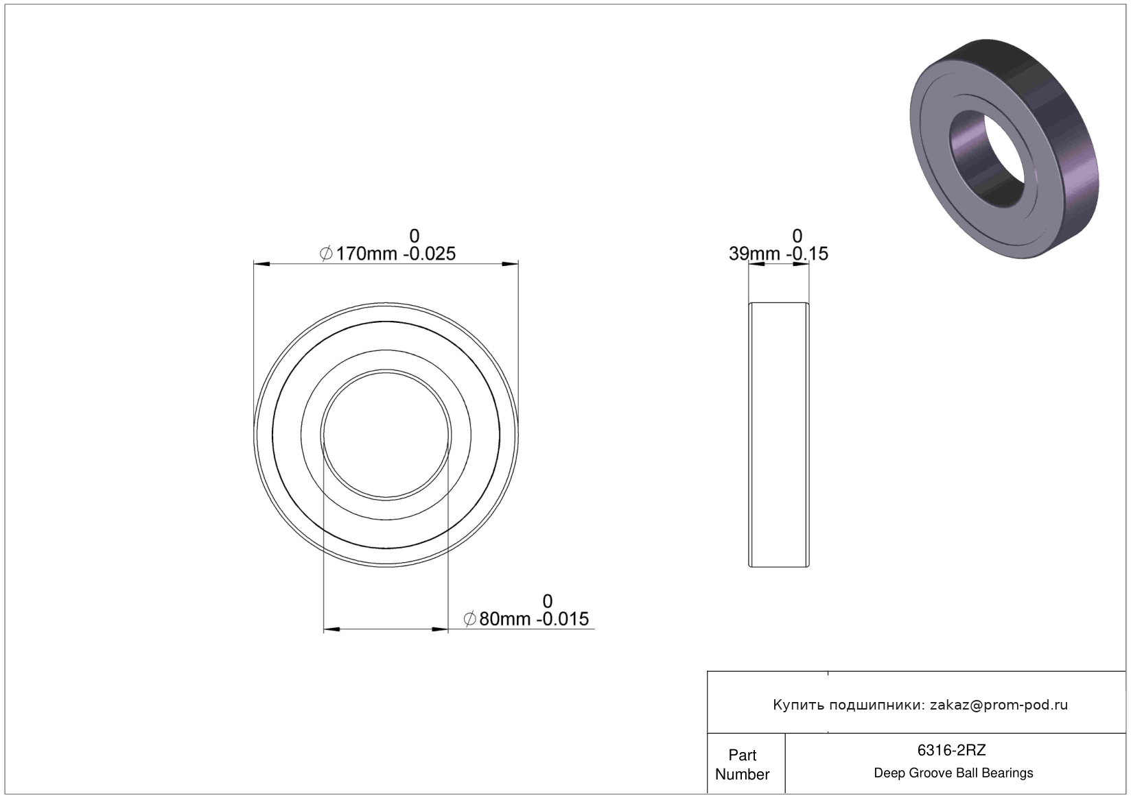 Цена на подшипник 6316-2RZ является расчетной и зависит от следующих факторов: