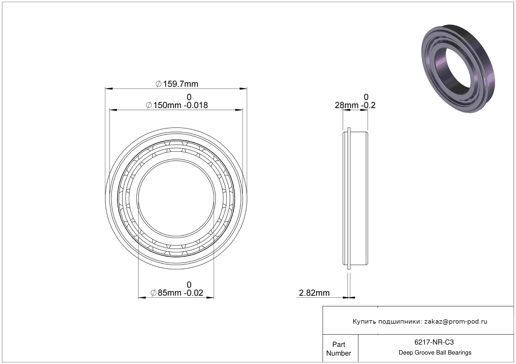 | 217-2ZJ | Шариковый подшипник | Защитная шайба с обеих сторон. Стальные фиксаторы. |