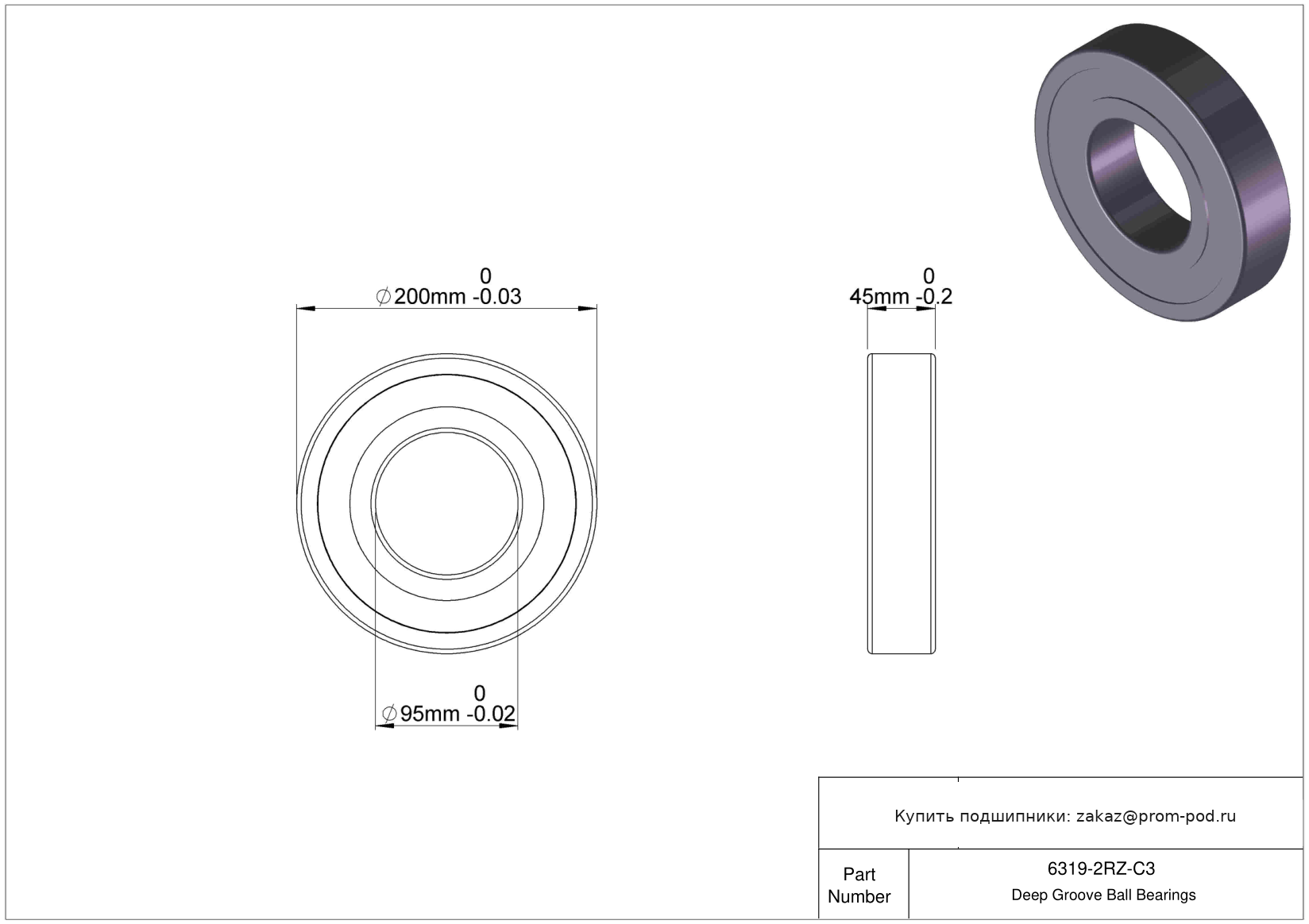 Цена на подшипник 6319-2RZ-C3 является расчетной и зависит от следующих факторов: