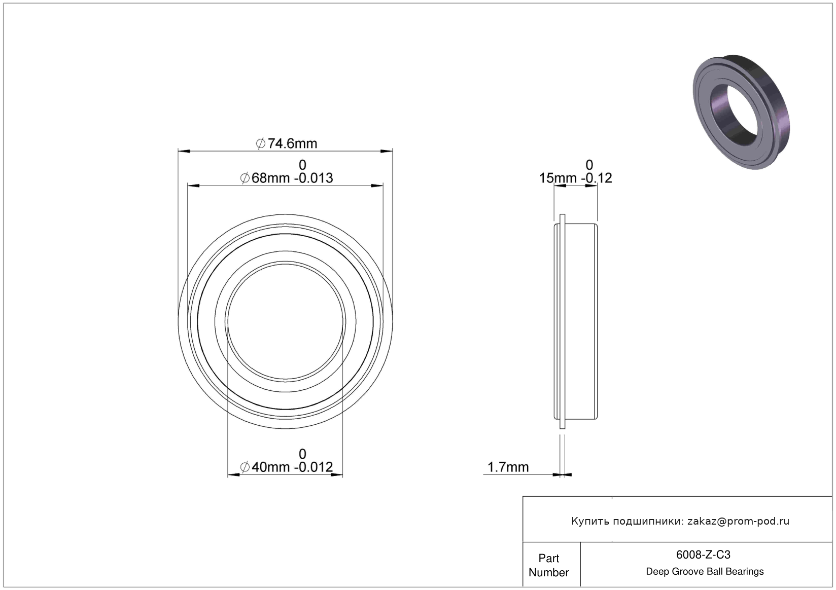 Цена на подшипник 6008-Z-C3 является расчетной и зависит от следующих факторов: