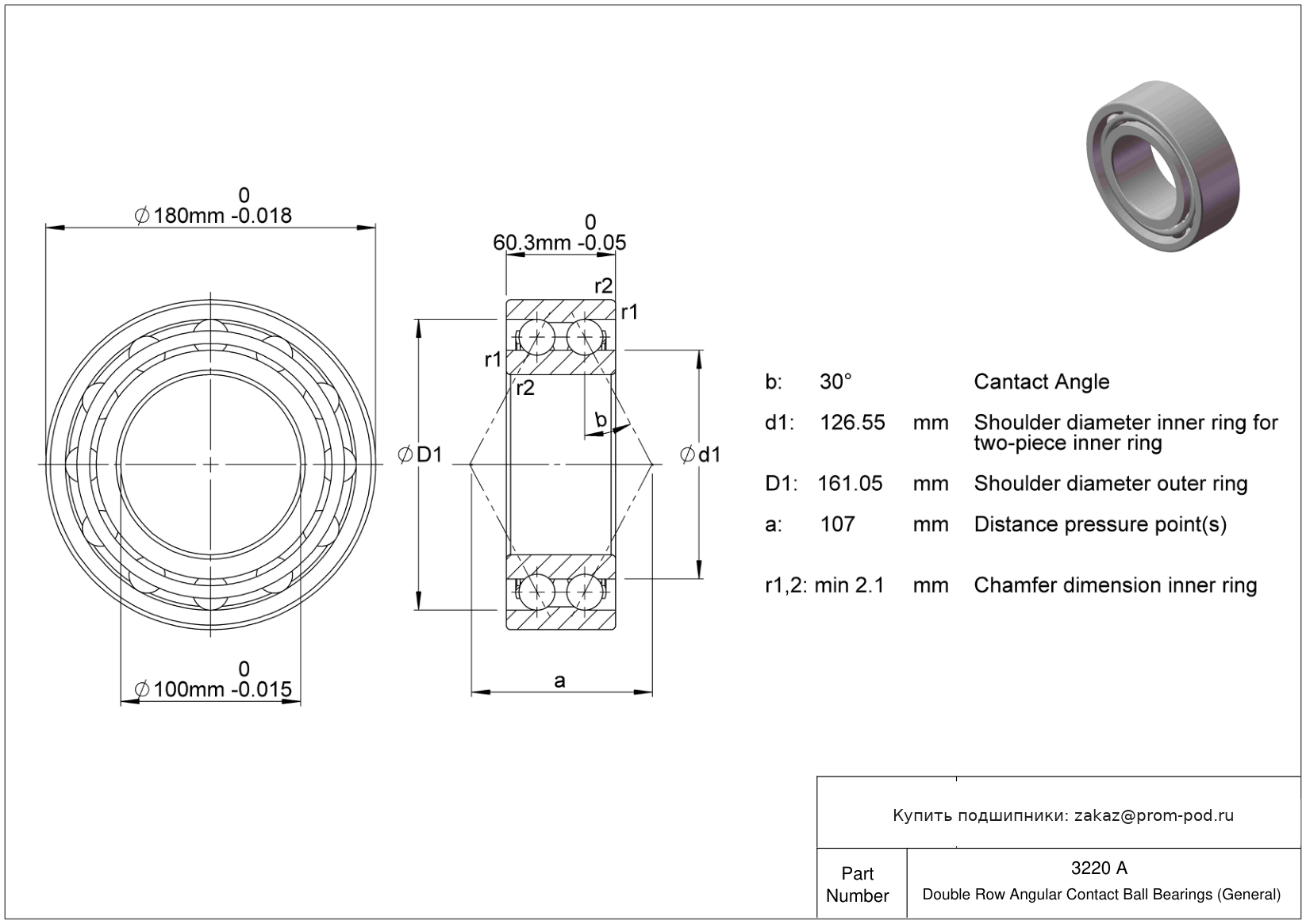 | SS3220 2RS | Радиально-упорный шариковый подшипник | Уплотнение с обеих сторон, NBR. |
