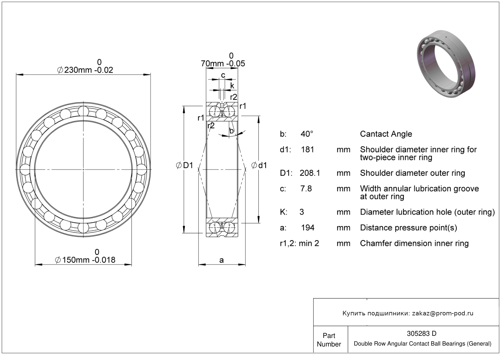 Угол контакта 25 градусов. Поперечное сечение подшипника 1/2 площади.