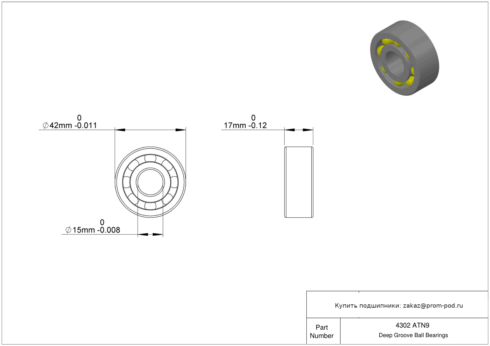 Уплотнение с обеих сторон, NBR. Сепаратор: Сепаратор из стеклонаполненного полиамида (PA66), защелкивающийся сепаратор, с центрированием по телам качения. Массивные латунные сепараторы.