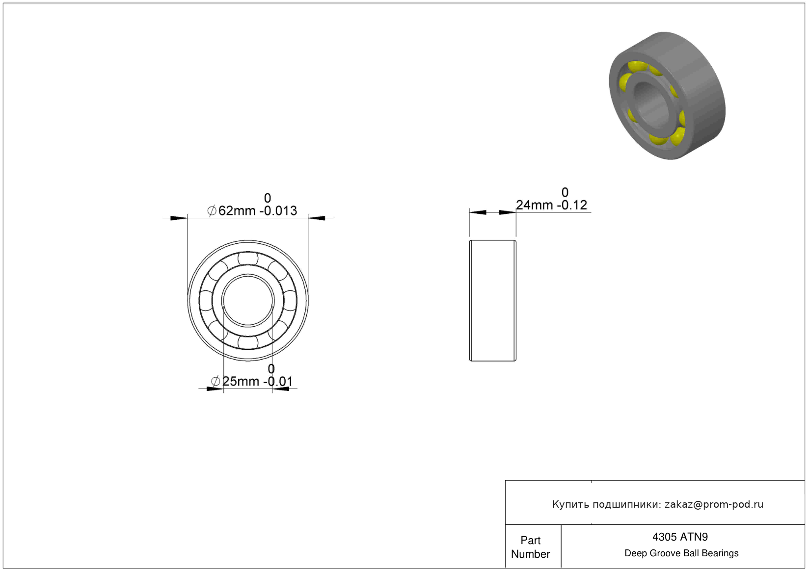 | 2305-TVH | Самоустанавливающийся шариковый подшипник | Сепаратор: Сепаратор из стеклонаполненного полиамида (PA66), защелкивающийся сепаратор, с центрированием по телам качения. |