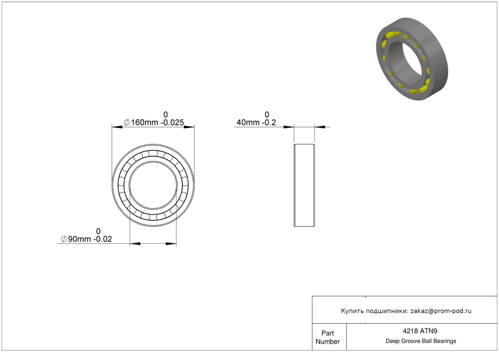 | 2218-TVH | Самоустанавливающийся шариковый подшипник | Сепаратор: Сепаратор из стеклонаполненного полиамида (PA66), защелкивающийся сепаратор, с центрированием по телам качения. |