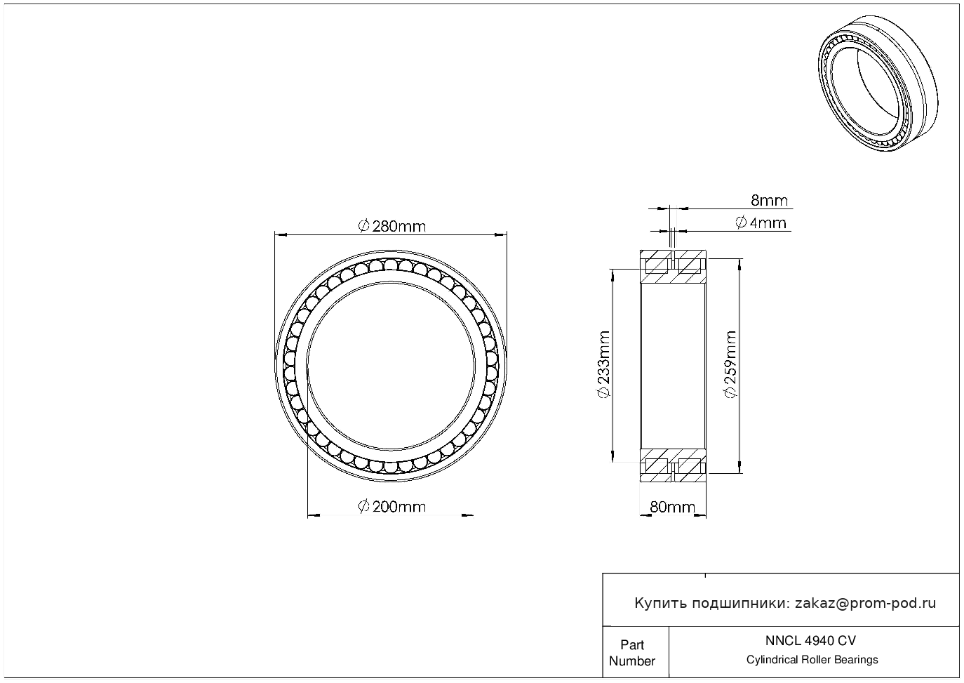 Цена на подшипник NNCL 4940 CV является расчетной и зависит от следующих факторов: