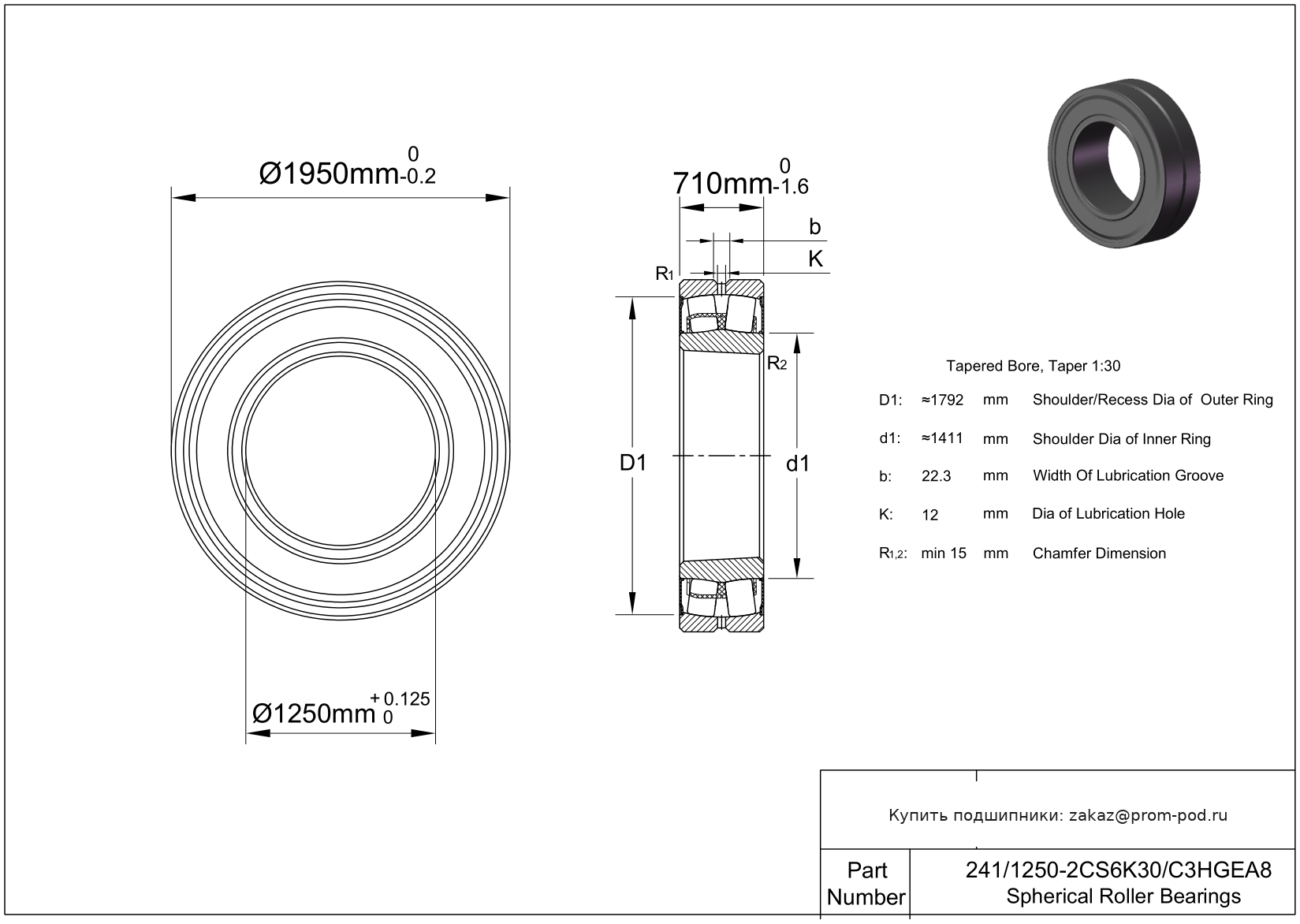 Цена на подшипник 241/1250-2CS6K30/C3HGEA8 является расчетной и зависит от следующих факторов: