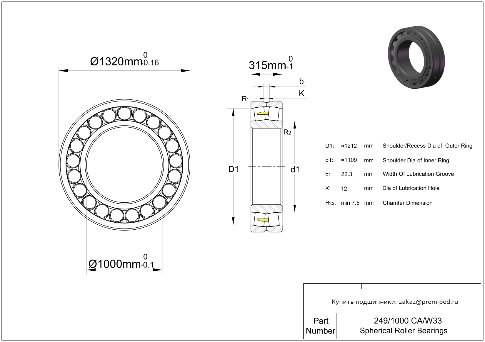 Цена на подшипник 249/1000 CA/W33 является расчетной и зависит от следующих факторов: