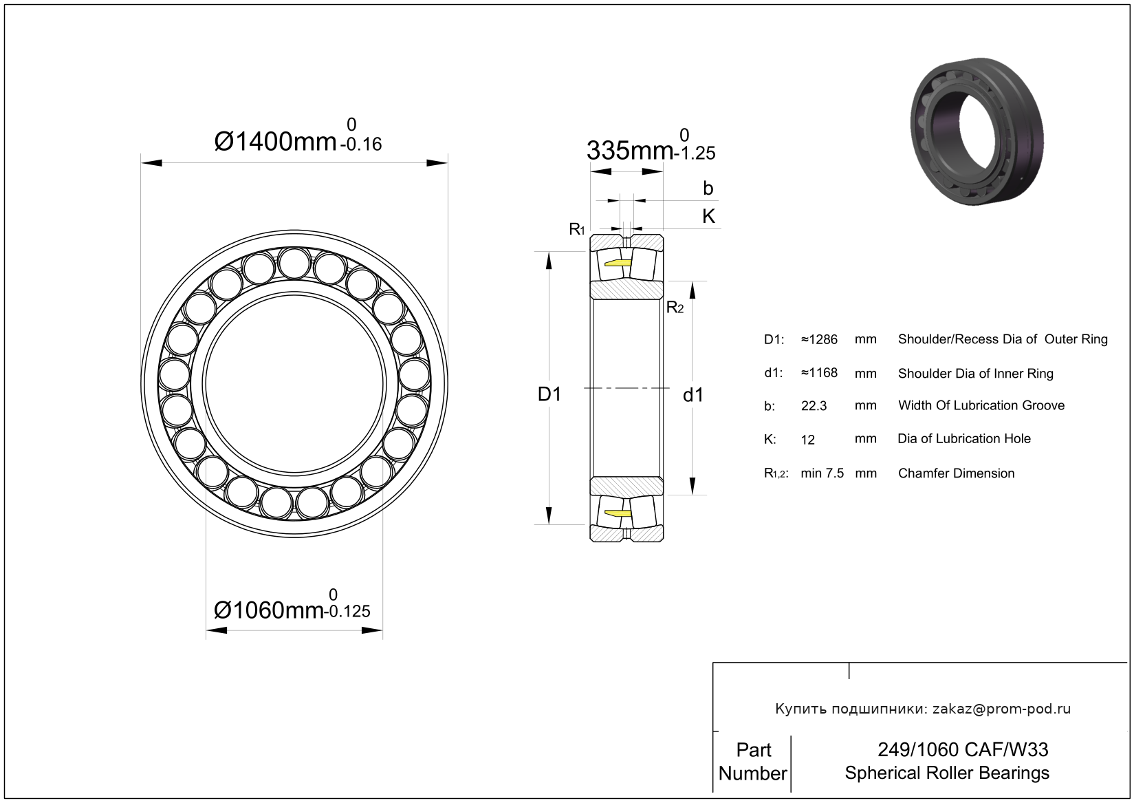 Цена на подшипник 249/1060 CAF/W33 является расчетной и зависит от следующих факторов: