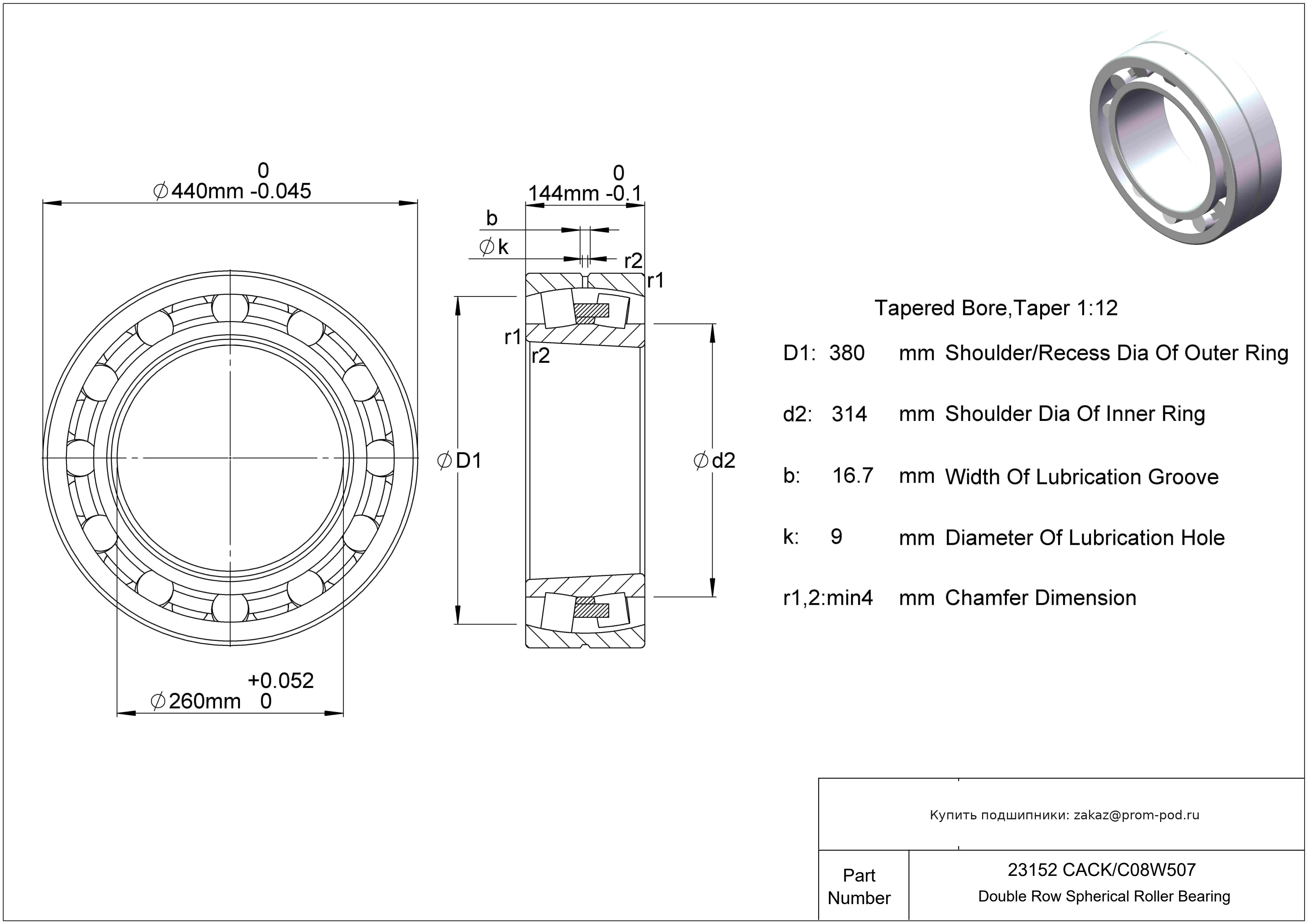 Цена на подшипник 23152 CACK/C08W507 является расчетной и зависит от следующих факторов: