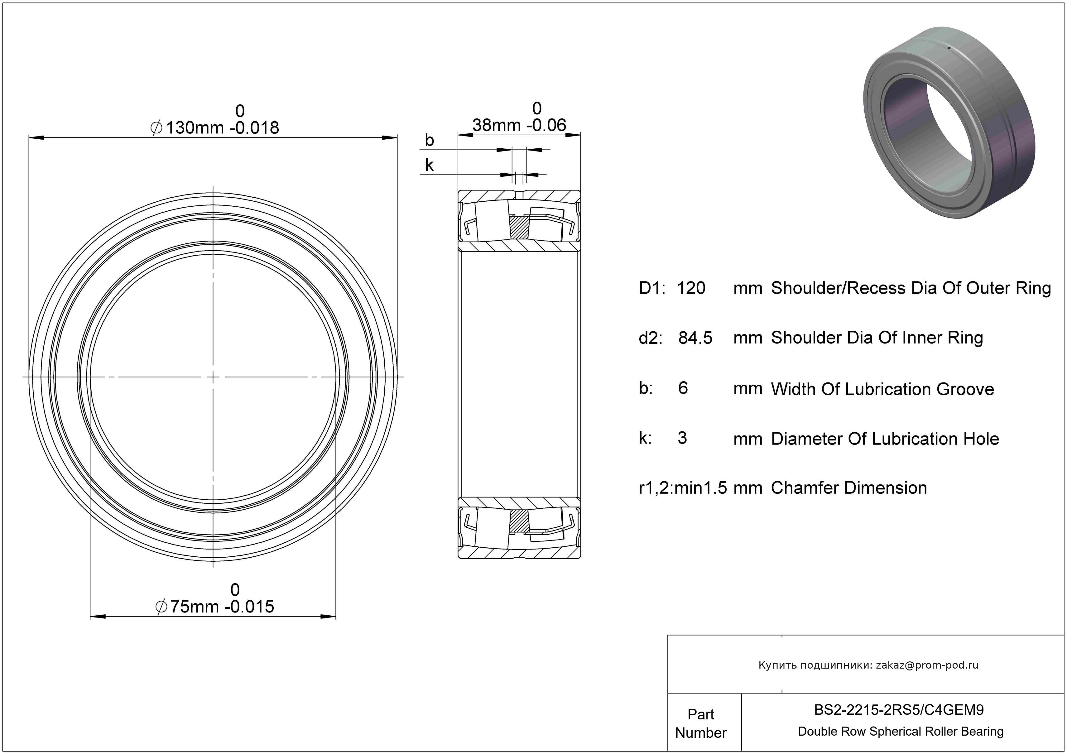 Тугое кольцо упорного роликоподшипника с цилиндрическими роликами. Подшипник без смазочной канавки и без отверстий для смазки по внешнему кольцу. 2 Уплотнения из фторкаучука, заполненные высокотемпературной смазкой. Пиковая рабочая температура составляет 200°C. Внутренний зазор больше С3. Оптимизированный профиль (для метрических серий). Малошумный. С выпуклыми асимметричными роликами и обработанным сепаратором. Граничные размеры не соответствуют серии размеров ISO.