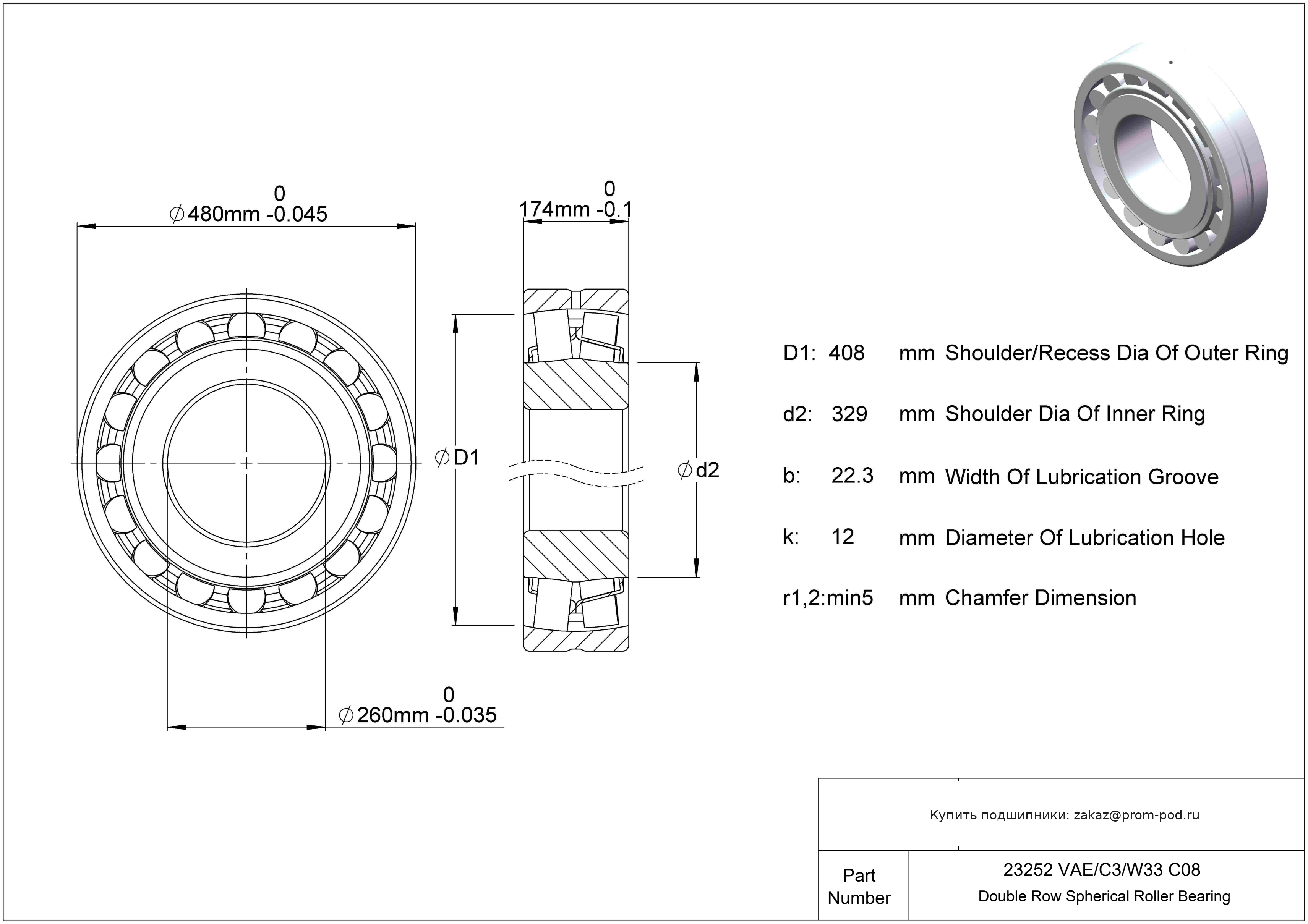 Цена на подшипник 23252 VAE/C3/W33 C08 является расчетной и зависит от следующих факторов: