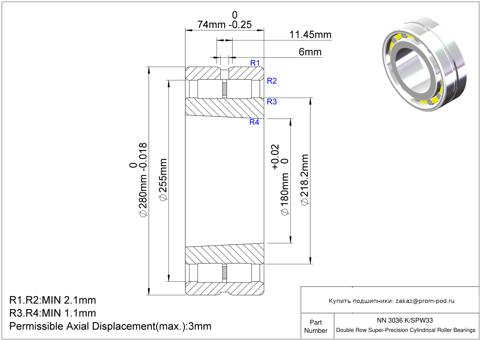Цена на подшипник NN 3036 K/SPW33 является расчетной и зависит от следующих факторов: