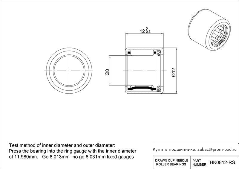 Цена на подшипник HK0812-RS является расчетной и зависит от следующих факторов:
