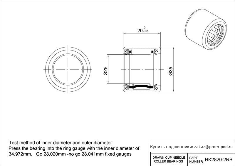 Цена на подшипник HK2820-2RS является расчетной и зависит от следующих факторов:
