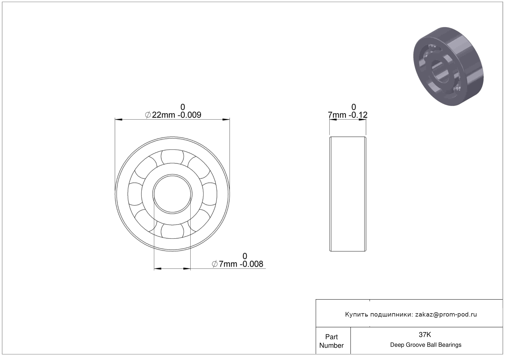 | 37KD | Шариковый подшипник | Поперечное сечение подшипника 1/2 площади. |
