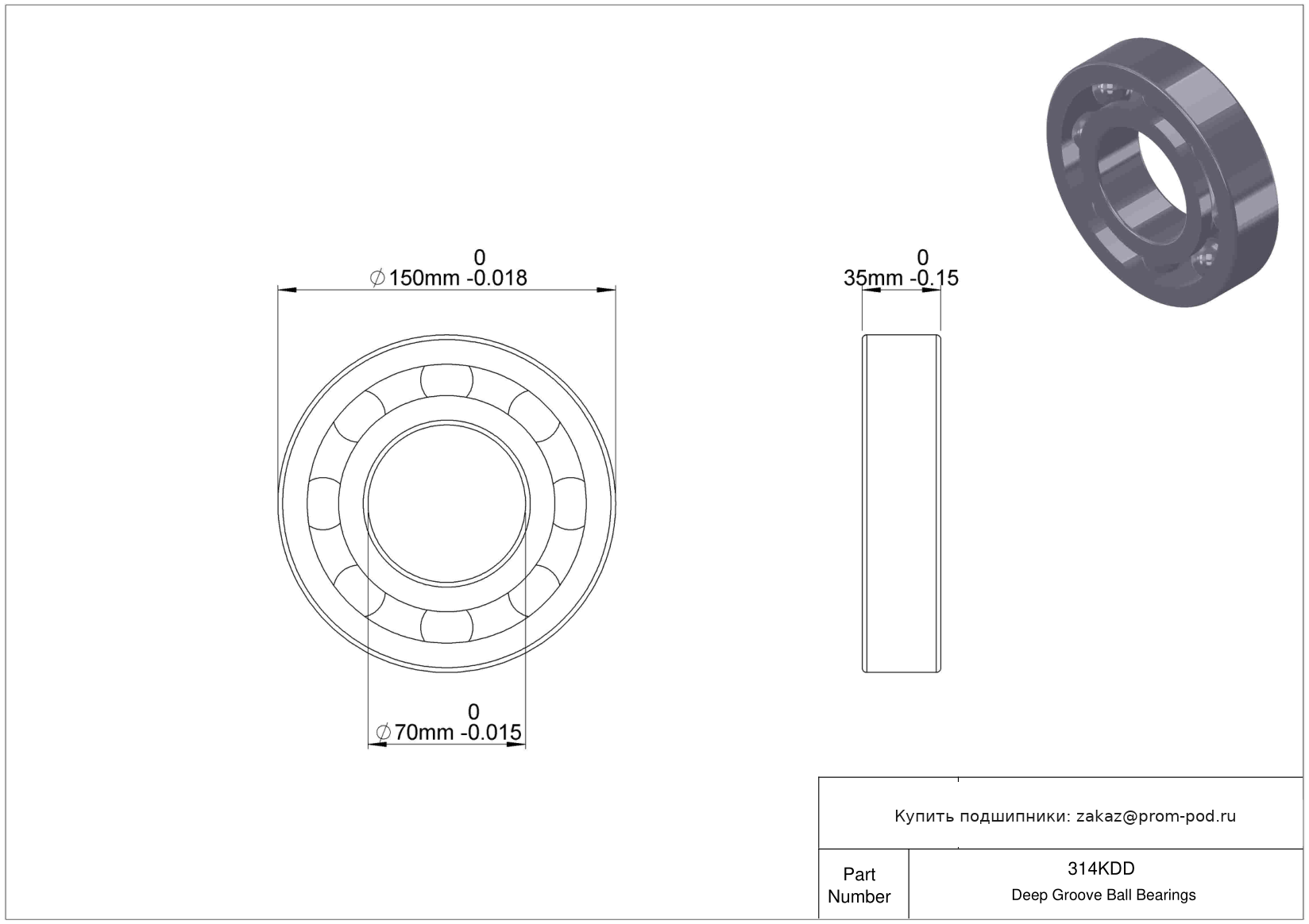 | 6314 2RS | Шариковый подшипник | Уплотнение с обеих сторон, NBR. |