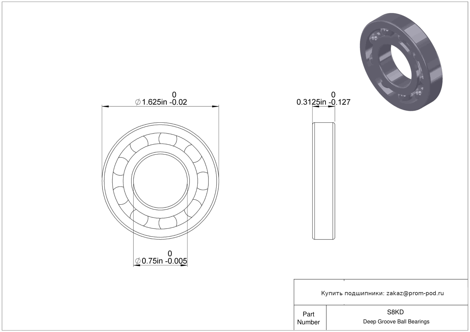 | S8KDD | Шариковый подшипник | Шарики и кольца из материала AISI 440C. |