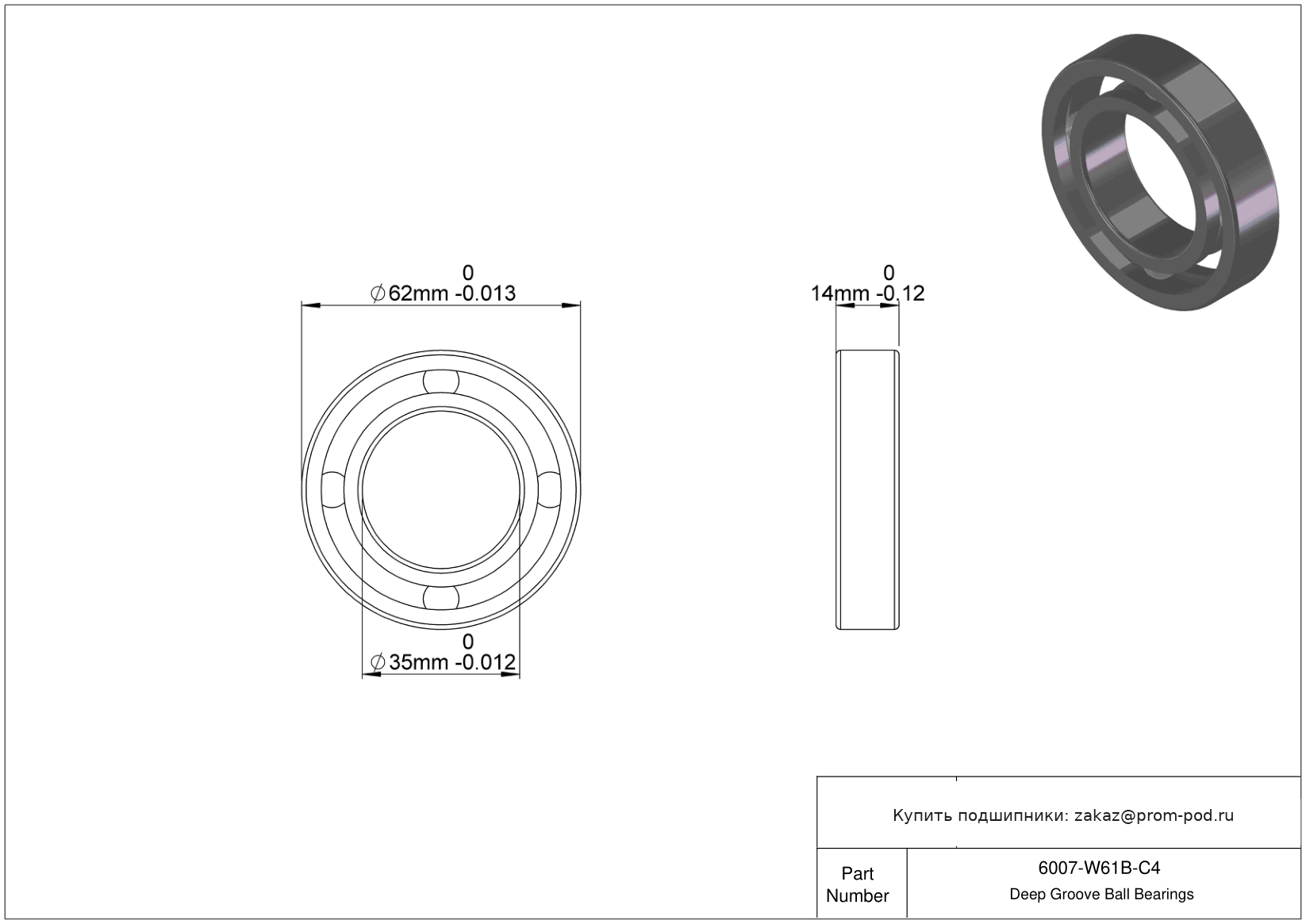 | TMB007 | Шариковый подшипник | Специальная сталь с термообработкой для более длительного срока службы. |