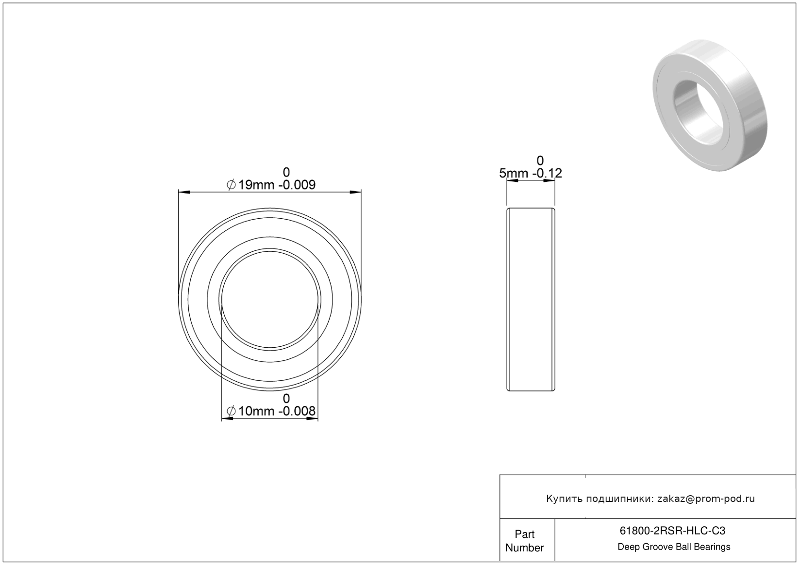 Цена на подшипник 61800-2RSR-HLC-C3 является расчетной и зависит от следующих факторов: