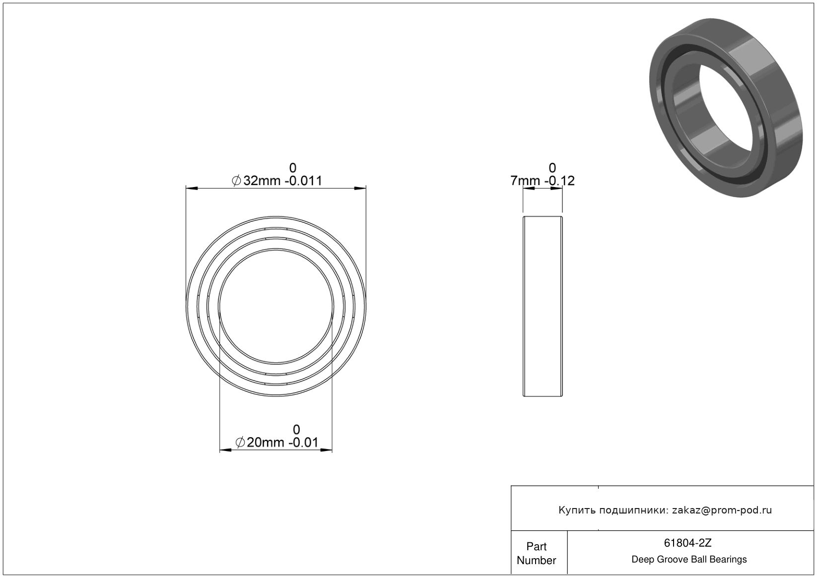 | 6804 2RS | Шариковый подшипник | Уплотнение с обеих сторон, NBR. |
