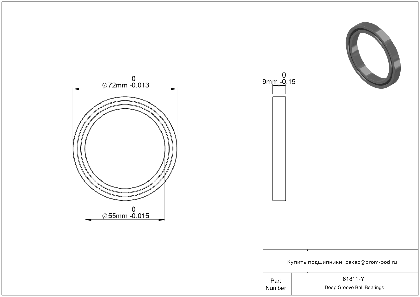 | 6811 2RU | Шариковый подшипник | Бесконтактное уплотнение с двух сторон. |
