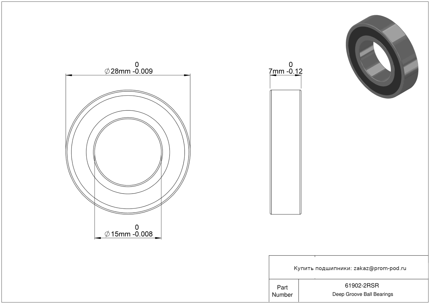 | 6902 2RS | Шариковый подшипник | Уплотнение с обеих сторон, NBR. |
