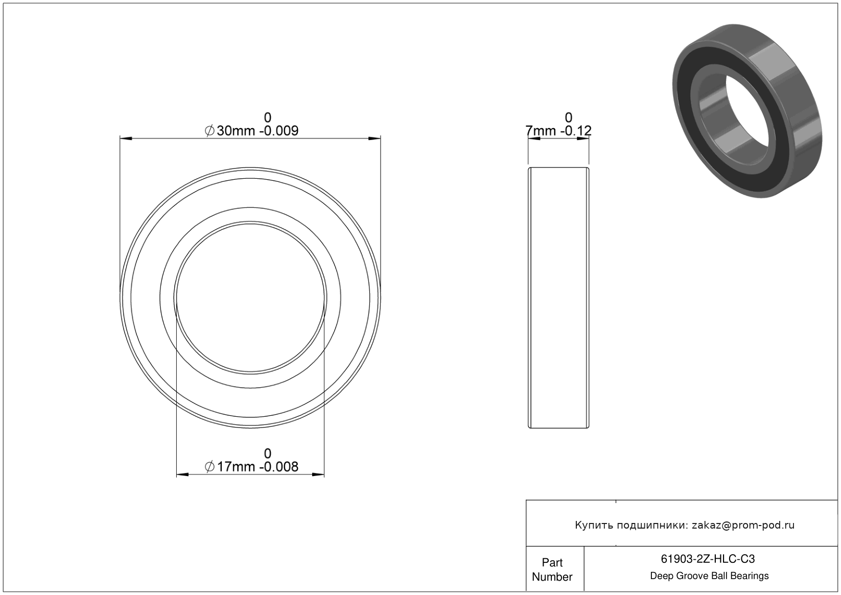 | 6903 2RS | Шариковый подшипник | Уплотнение с обеих сторон, NBR. |