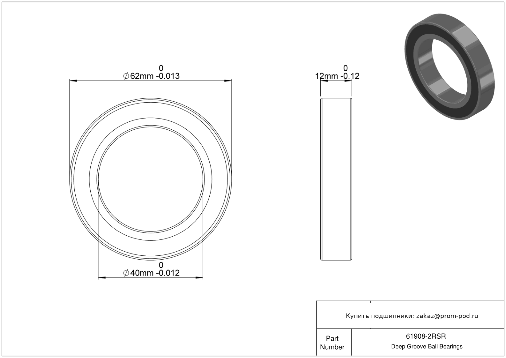 | 6908 2RS | Шариковый подшипник | Уплотнение с обеих сторон, NBR. |
