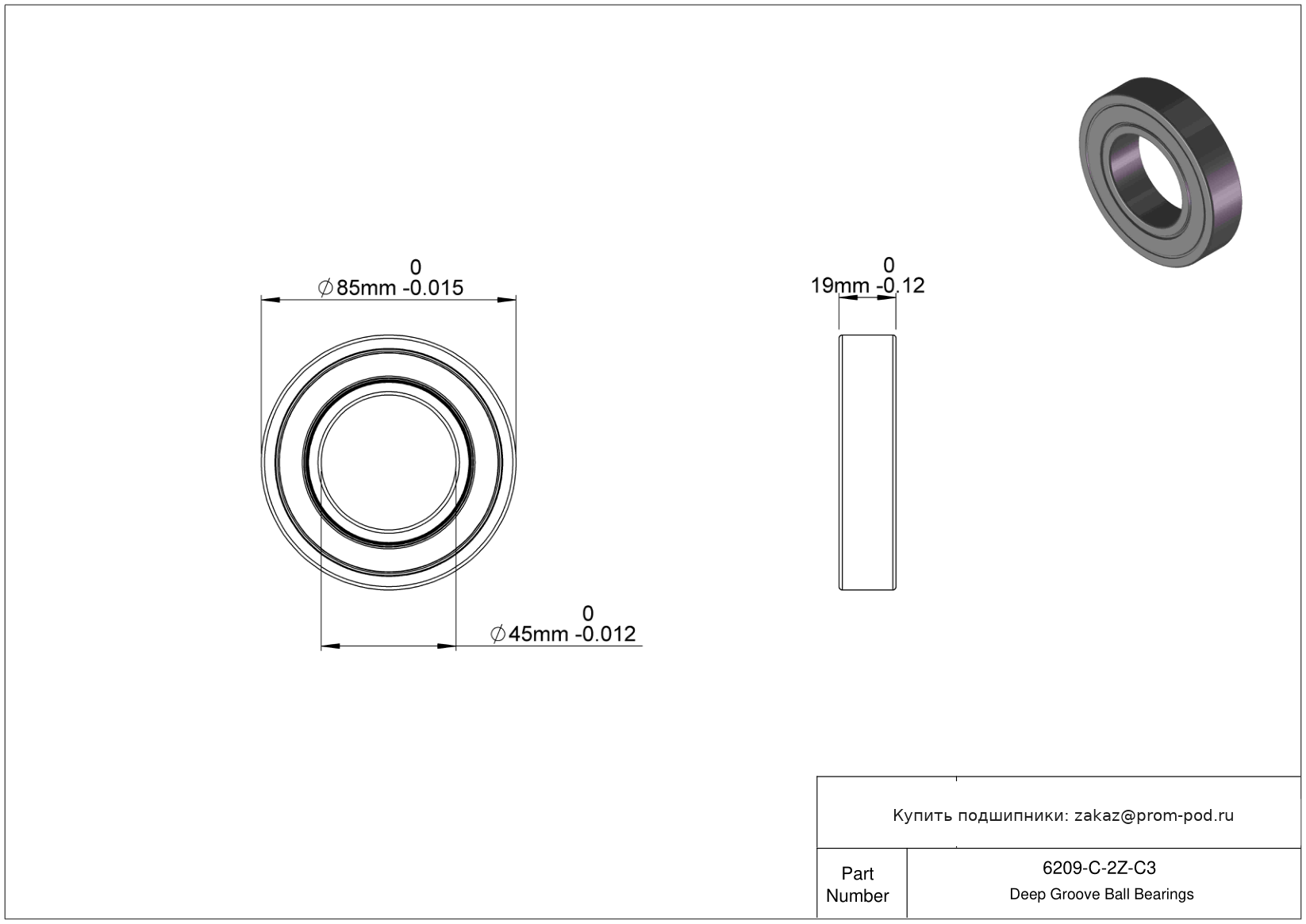 Цена на подшипник 6209-C-2Z-C3 является расчетной и зависит от следующих факторов: