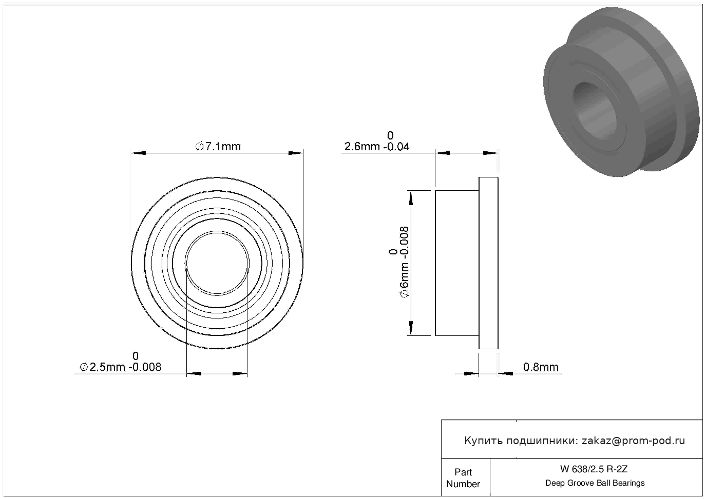 | F682x 2rs | Шариковый подшипник | Стандартное сечение серии для открытых подшипников (.750x.750). Уплотнение с обеих сторон, NBR. Для упорных шарикоподшипников: наружный диаметр шайбы вала меньше, чем шайбы корпуса. |