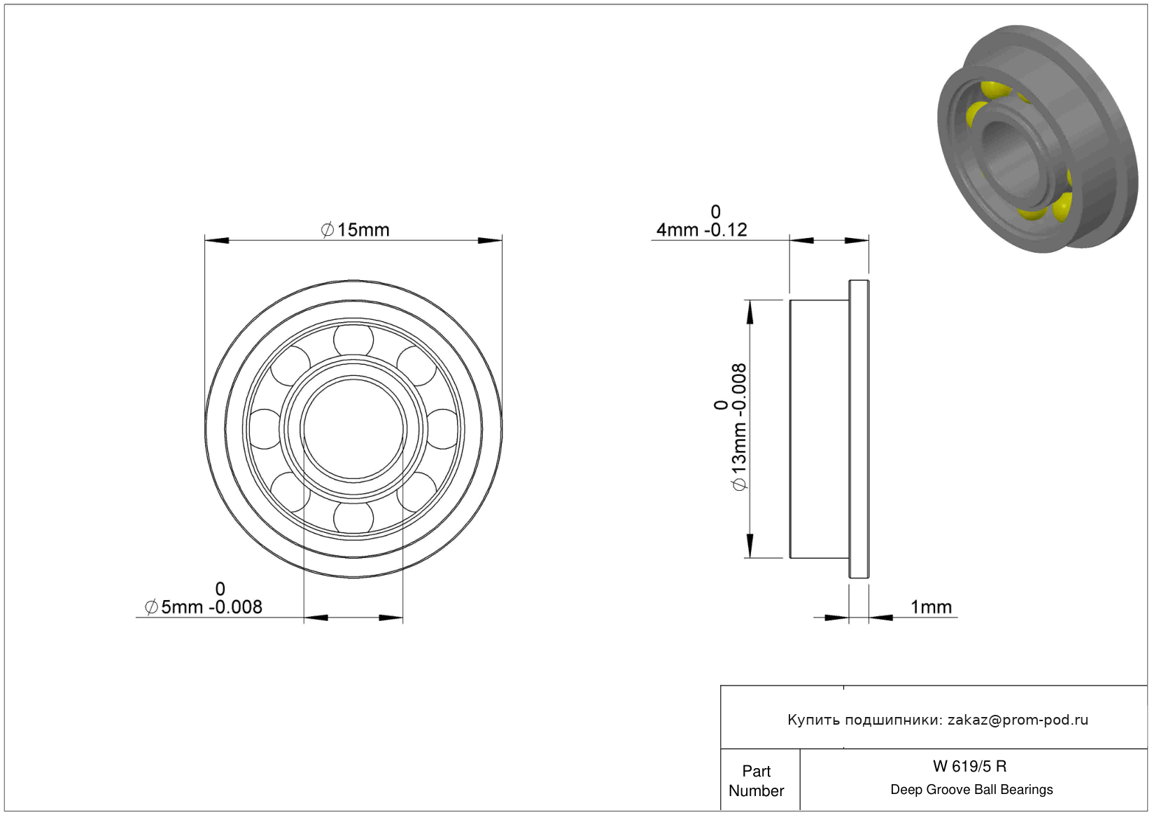 | 619/5-2RZ | Шариковый подшипник | |