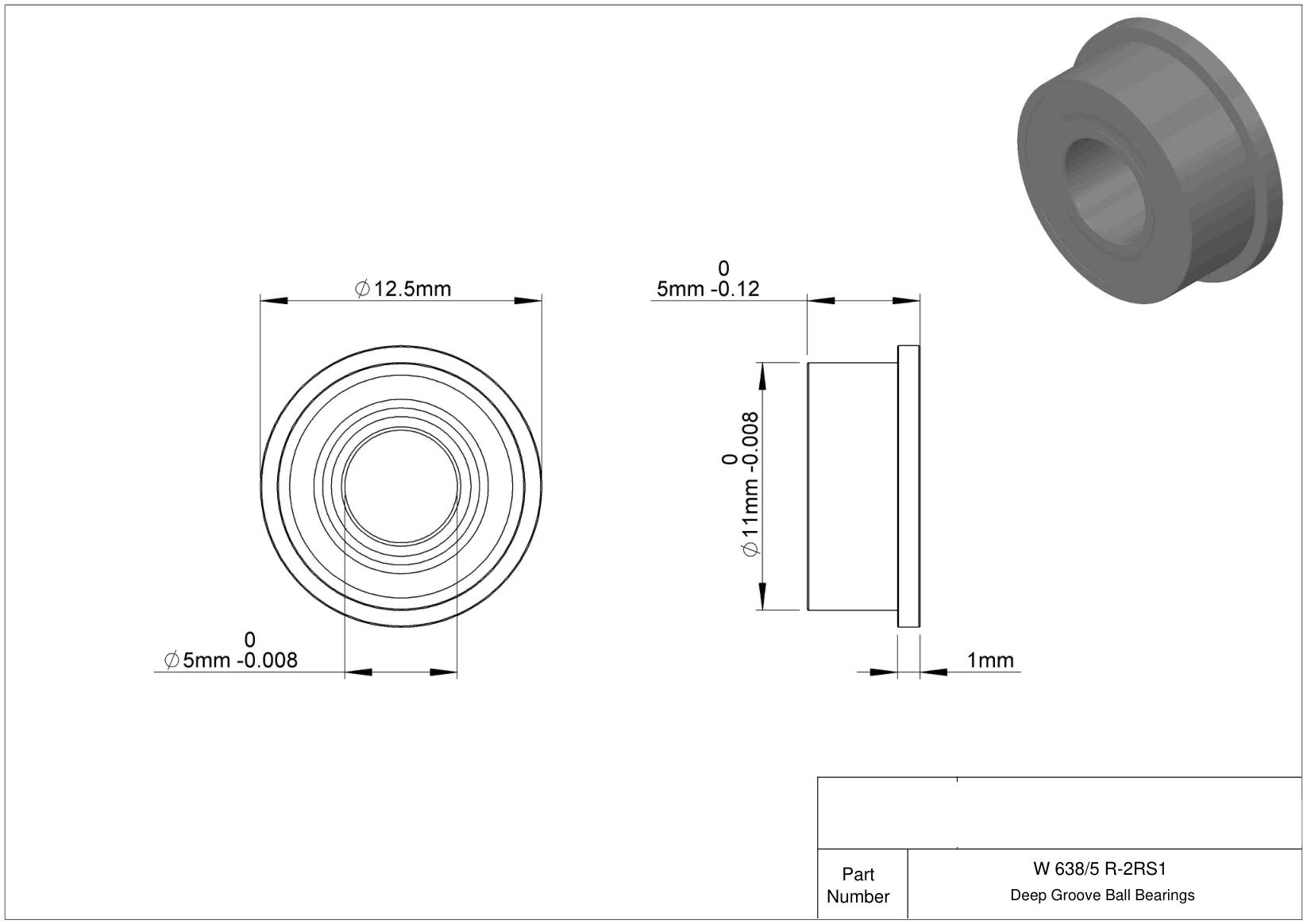 | 685 2RS | Шариковый подшипник | Уплотнение с обеих сторон, NBR. |