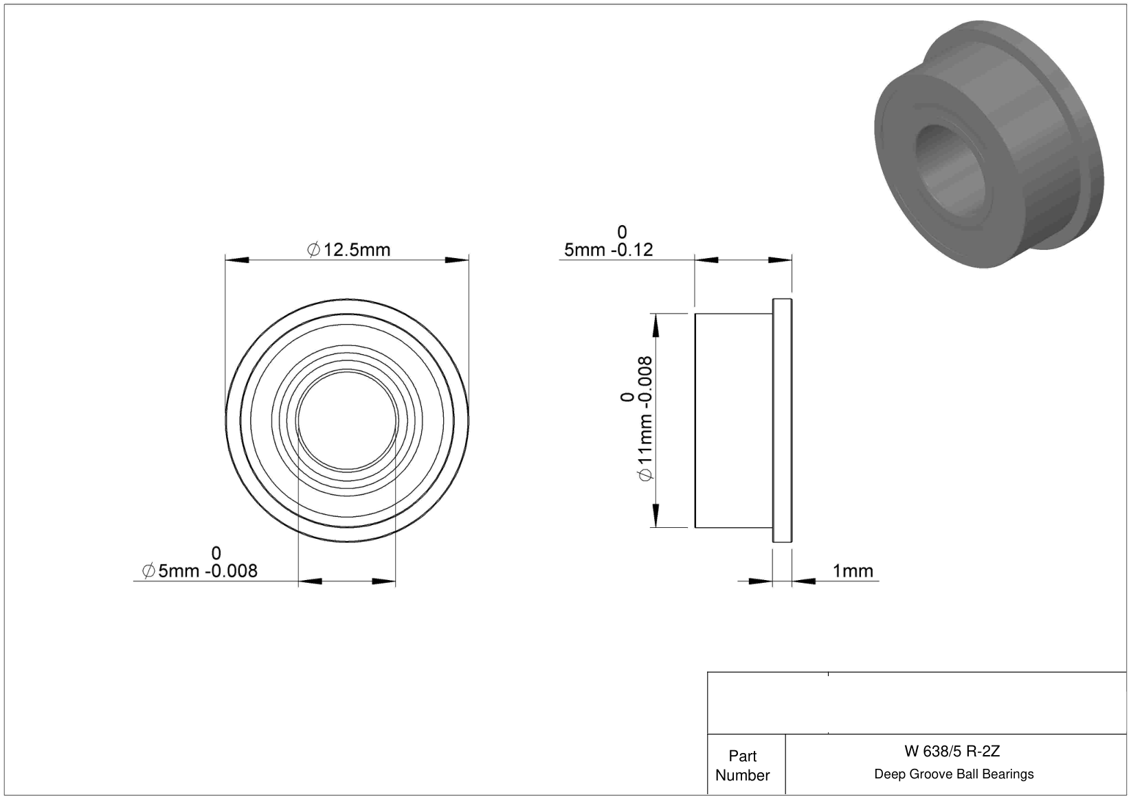 | 685 2RS | Шариковый подшипник | Уплотнение с обеих сторон, NBR. |