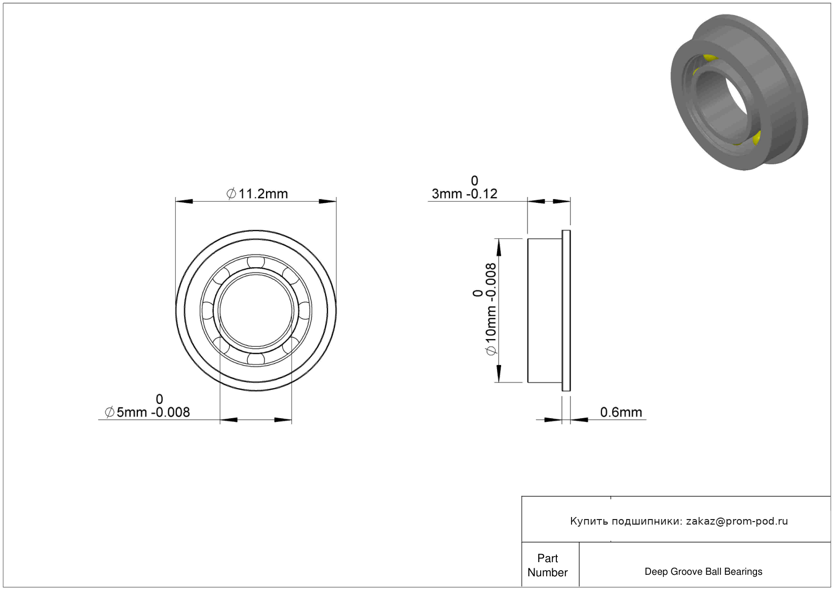 | MF105 | Шариковый подшипник | Тип подшипника: Метрический специальный с фланцем. |