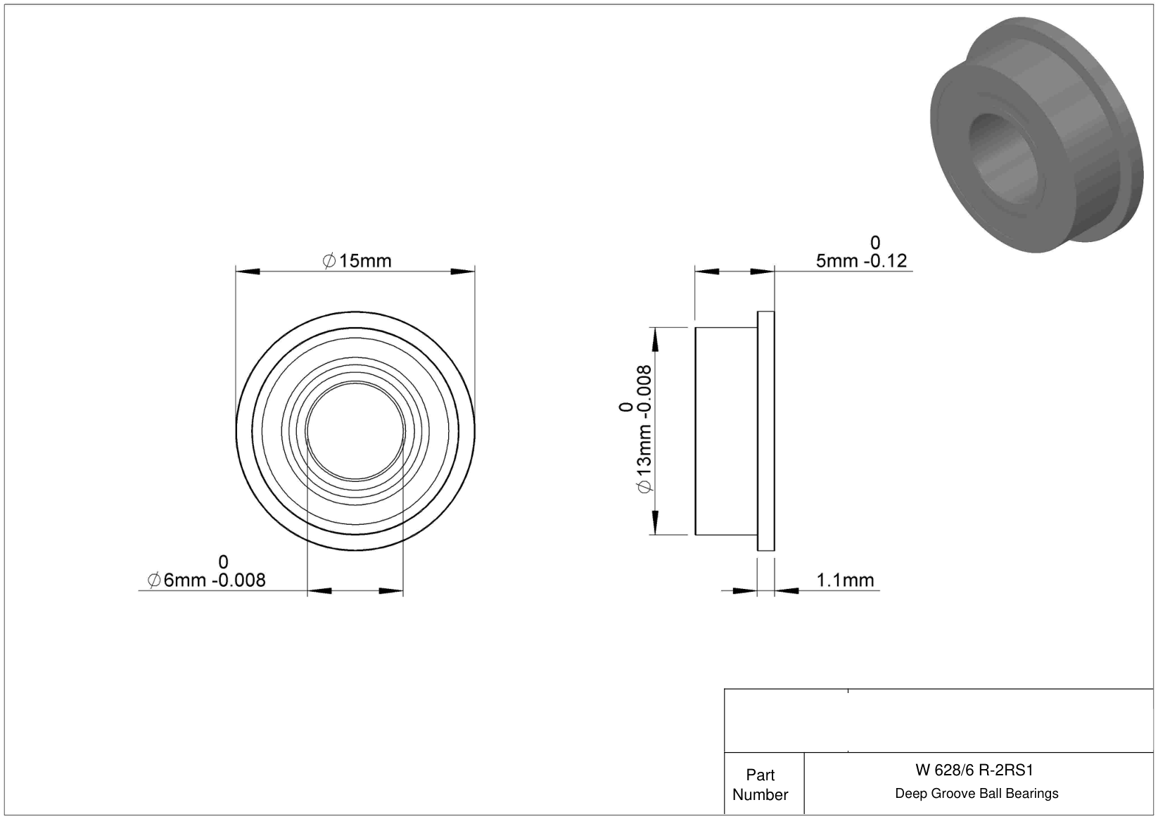 | F-W686T2ZZ1 | Шариковый подшипник | Полиамидный сепаратор, армированный стекловолокном для постоянной температуры +120°C. Два уплотнителя из синтетического каучука. |